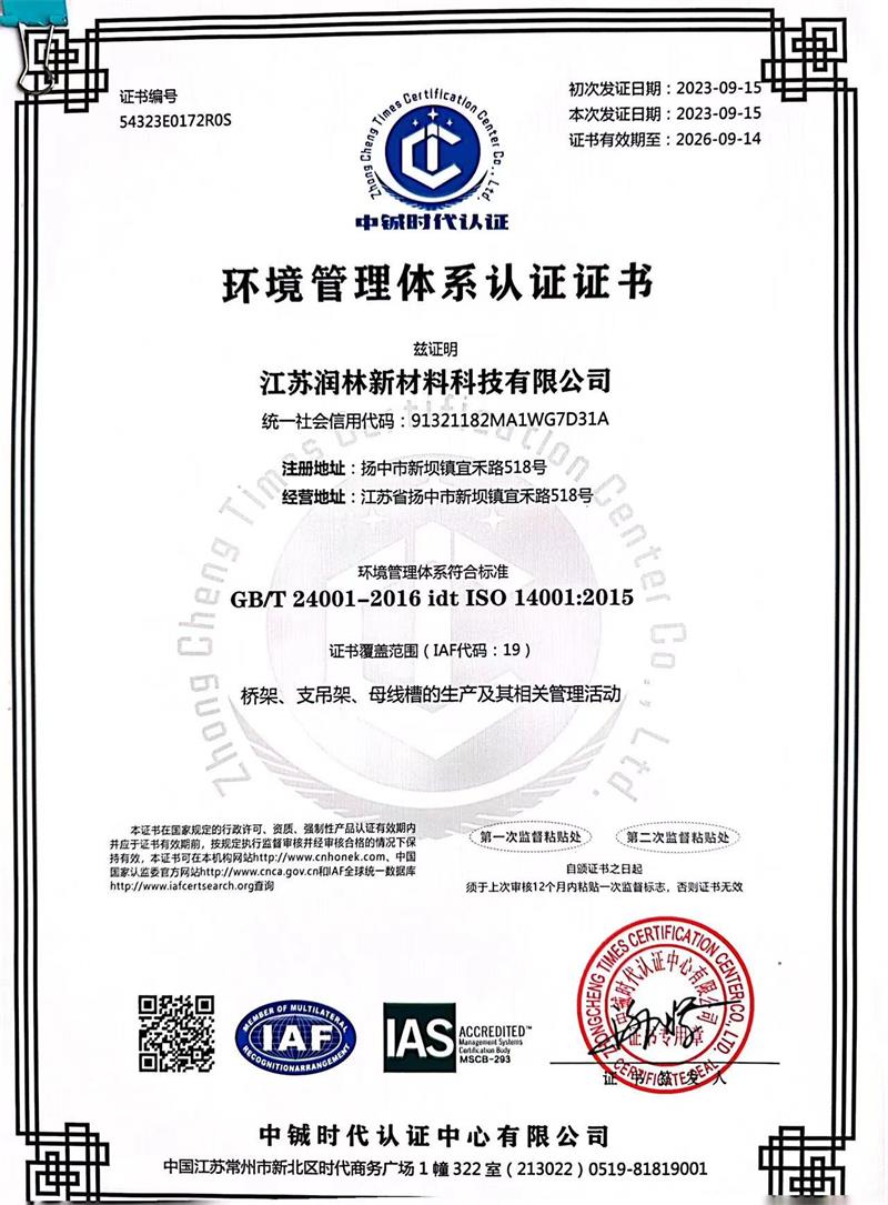 环境管理体系认证证书